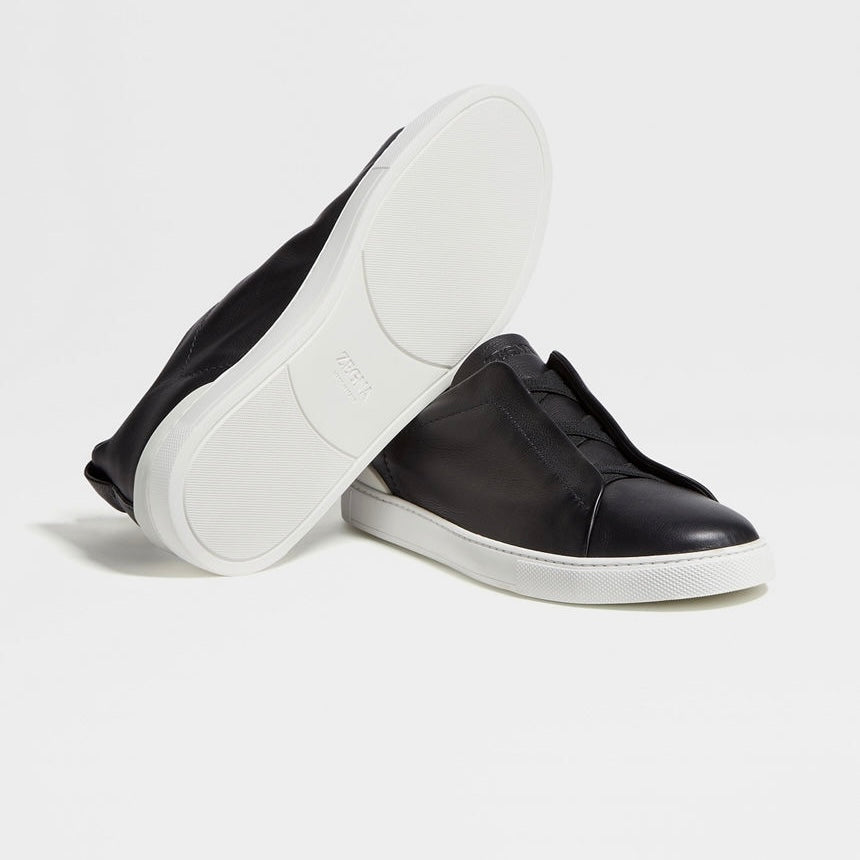 Zegna Triple Stitch leather sneakers BLACK SECONDSKIN TRIPLE STITCH
