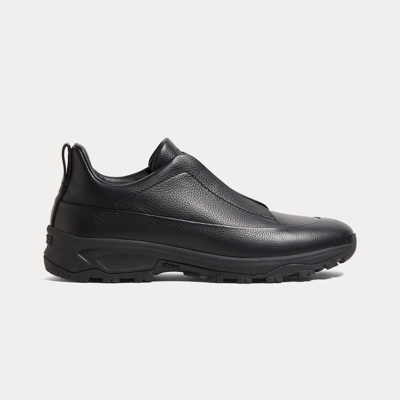 Zegna - Triple Stitch Monte Grained Calf Leather Black Slip On Sneakers